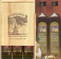 Wood box with 3 bottles of �Garcia Moron� Extra Virgin Olive Oil